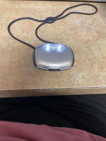 Ultimately, the LED lights I tried didn’t work out for me because of how hard the button was to press. I tried to think of what else might serve as a safety light for me. I looked online, but nothing really looked like it would work for what I needed. I figured I might have something at home that would work. I remembered that I got a Rayovac battery operated flashlight years ago that would fit the bill.