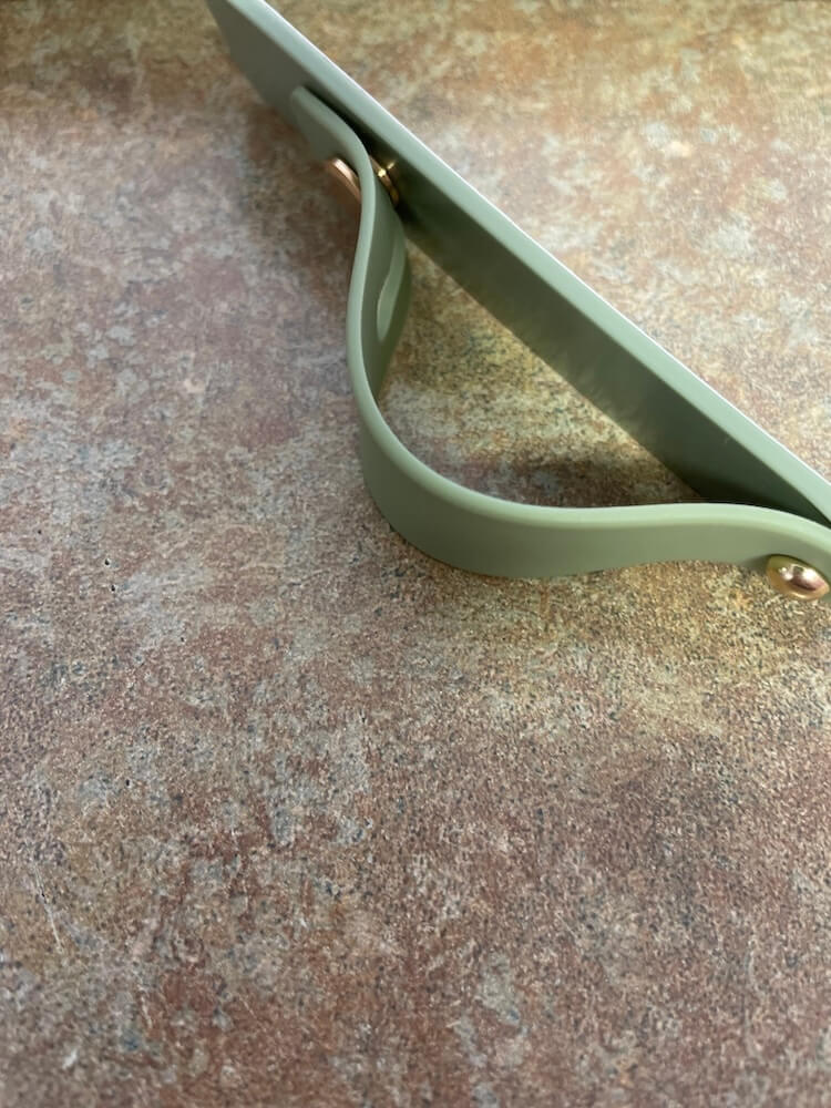 Additional note about holding your phone in a landscape / horizontal position: I put two fingers into the holder when it is in portrait mode, then rotate my hand 90°. It is an awkward angle but that is how you use landscape. I actually just found that if you can put your thumb and one other finger down below, it helps anchor your phone. If you have a hard time holding the phone, you can even pull the two straps apart (like I have it in one of my pictures) and then just set it down on whatever surface you’re using. See photos for examples.