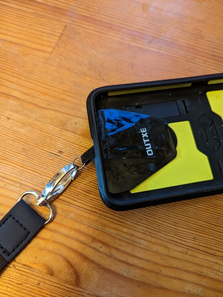 The phone is held upside-down and since the charging port is open, weather or falling debris could easily get in.