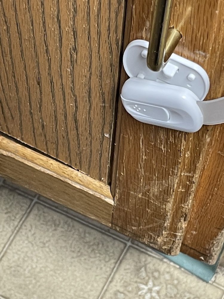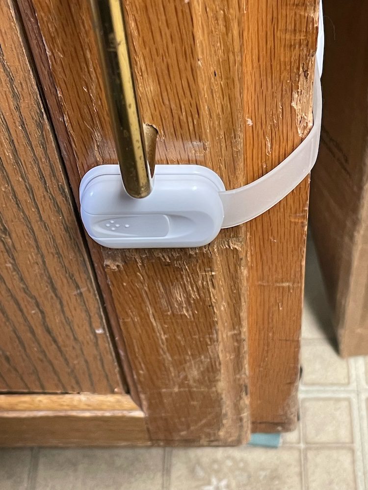 For curious pets or toddlers these “baby locks” might come in handy to keep drawers or cabinets closed. Jessica tested several different versions and found that the Skyla Homes Baby Locks worked best for decreased dexterity.