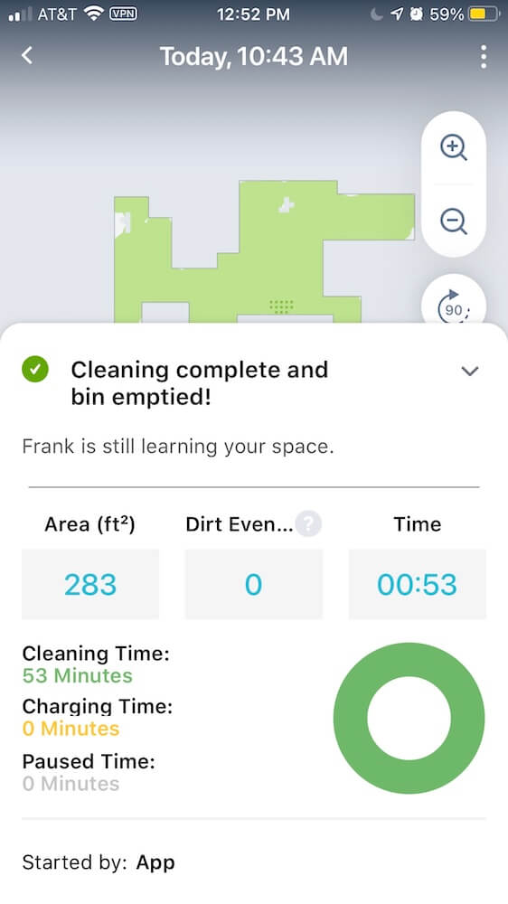 The vacuum sounds a chime if it gets stuck and needs assistance. If, at any time, you can’t find it, you can use the app to sound the chime on the vacuum.