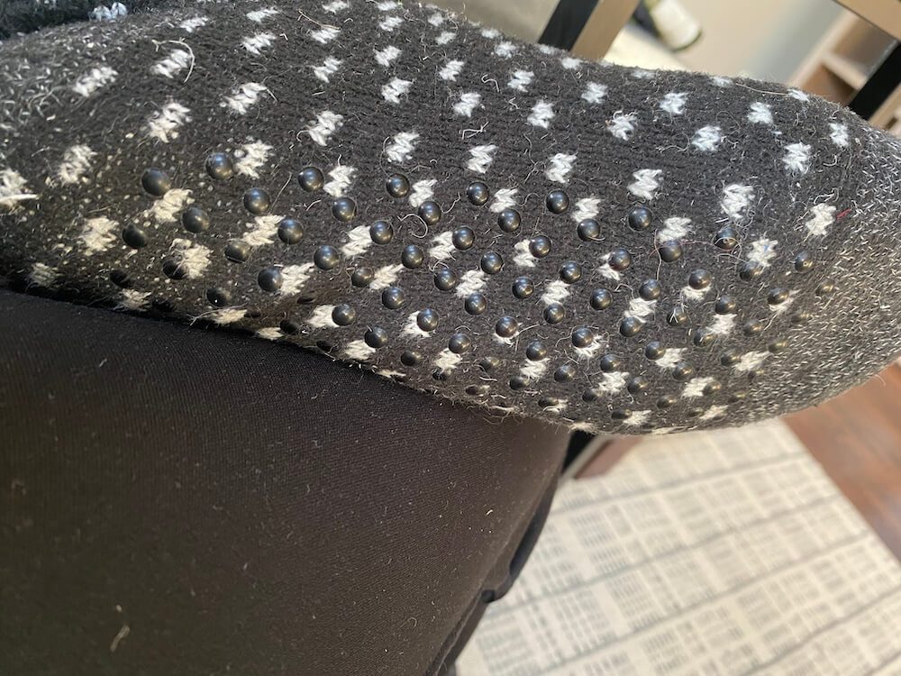 My friends got me these socks as a gift a few years ago and I wear them any time I’m just relaxing in the house. I’ve purchased more pairs of these because they are so comfy! These are great because they make me feel safer than regular socks (especially on the hard wood floors) because of the grips on the bottom of the sock. It’s also really fuzzy which is nice for cold winter nights.