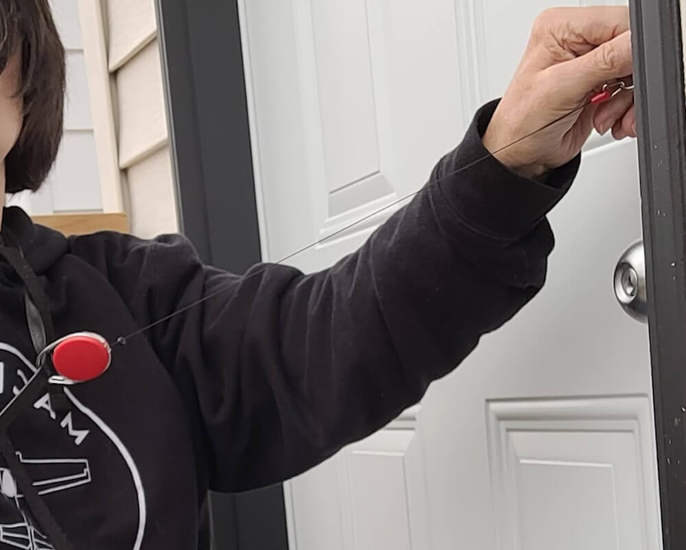 I think the biggest pro for the keychain extenders is not having to worry about my key falling. It just retracts back to the body of the extender. I can’t really think of a con. It might look in the video like I’m as close to the door as I would be if I didn’t have the keychain extender, that’s true. But I have no fear of the key falling through the wooden planks of my deck because my keychain is attached to my purse.