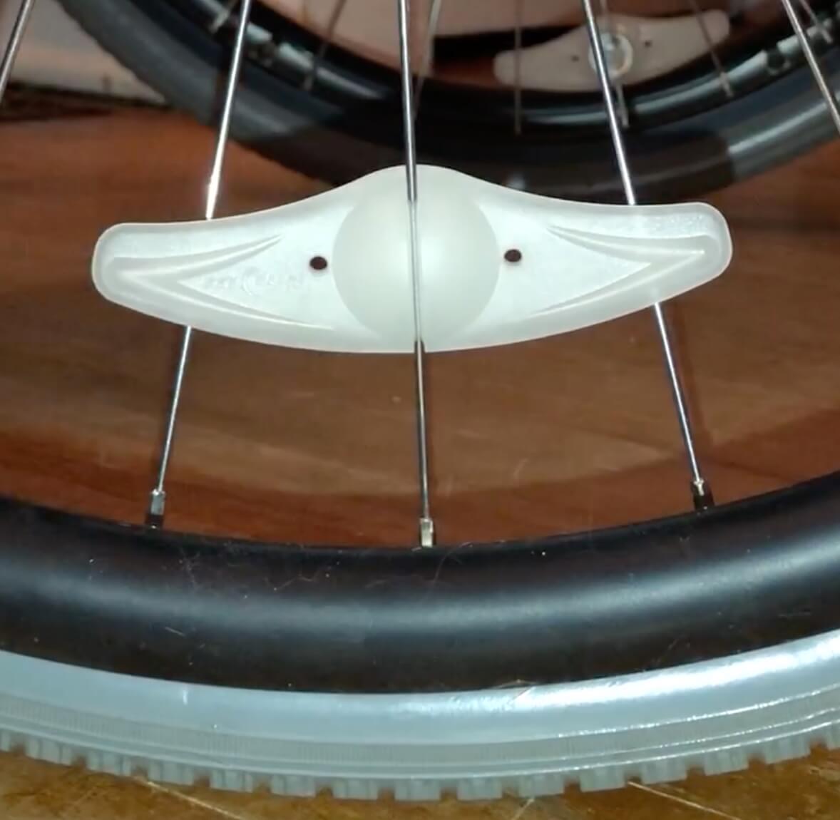 Attaching these lights to wheelchair spokes takes some finessing and hand strength, but there is no hardware or tools required to do so. I attached my lights directly opposite of my pneumatic air valves for two reasons: 1) so that the access to fill my tires isn’t restricted, and 2) so that I have a clear visual cue as to where my valves are.