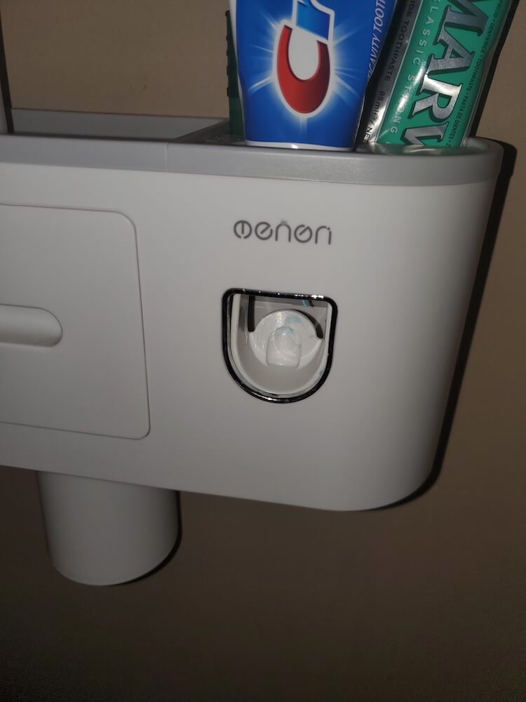 We’ve shared a model of toothpaste dispenser from Amazon that is similar to what the reviewer used.
